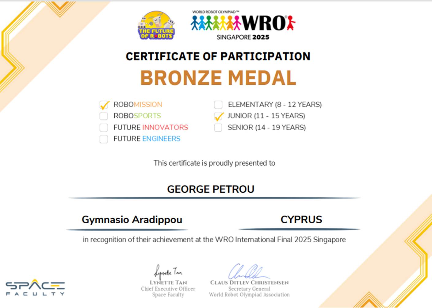 Πραγματοποιήθηκε στις 26-28/11/2025 στη Σιγκαπούρη, η Παγκόσμια Ολυμπιάδα Ρομποτικής WRO 2025 (World Robot Olympiad).