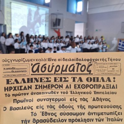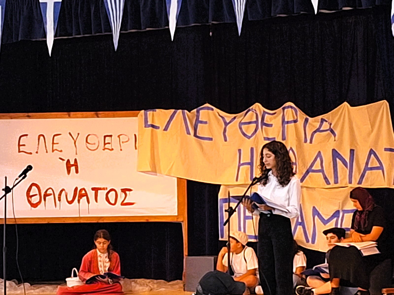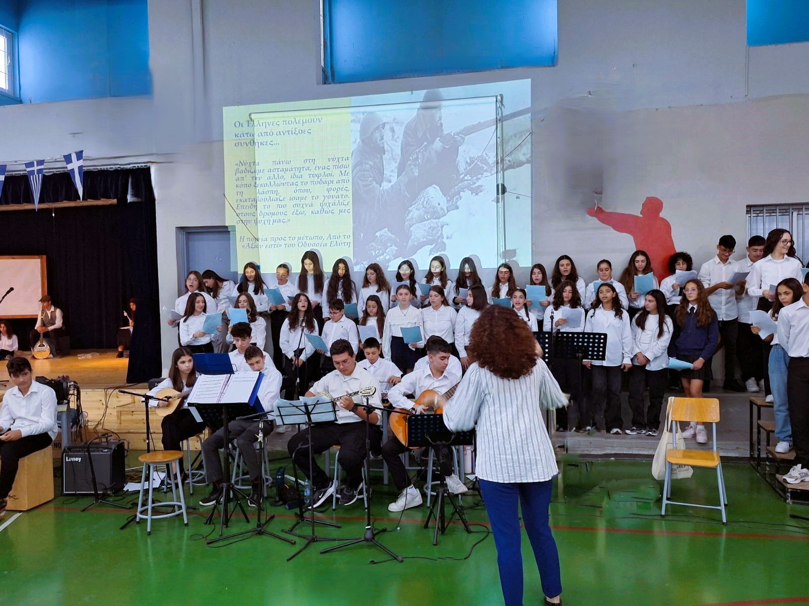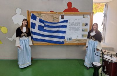 Με αισθήματα τιμής και εθνικής υπερηφάνειας, τιμήσαμε την Επέτειο της 28ης Οκτωβρίου 1940. Σε σεμνή και λιτή τελετή ανακηρύχθηκαν οι Σημαιοφόροι και οι Παραστάτες του σχολείου μας και παρουσιάστηκε το χρονικό του Έπους του ’40, διανθισμένο με απαγγελίες, ποιήματα, τραγούδια και χορούς.