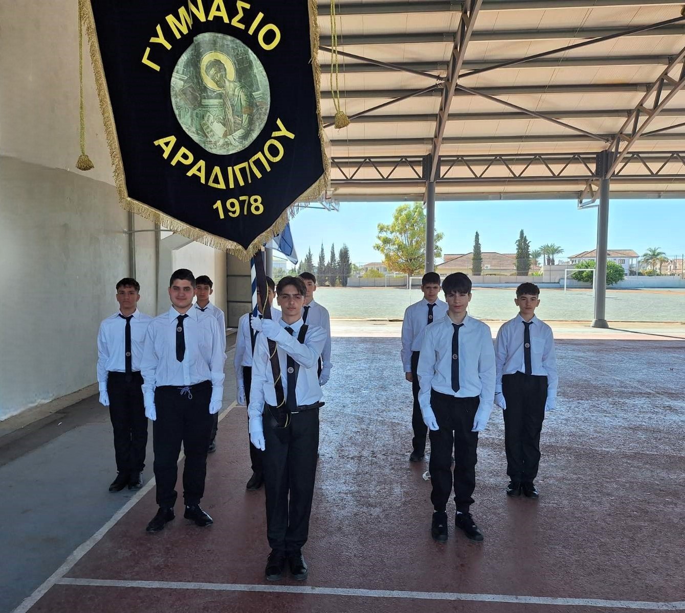 Εθνική Επέτειος 28ης Οκτωβρίου 1940 – Ανακήρυξη Σημαιοφόρων και Παραστατών του Γυμνασίου Αραδίππου.