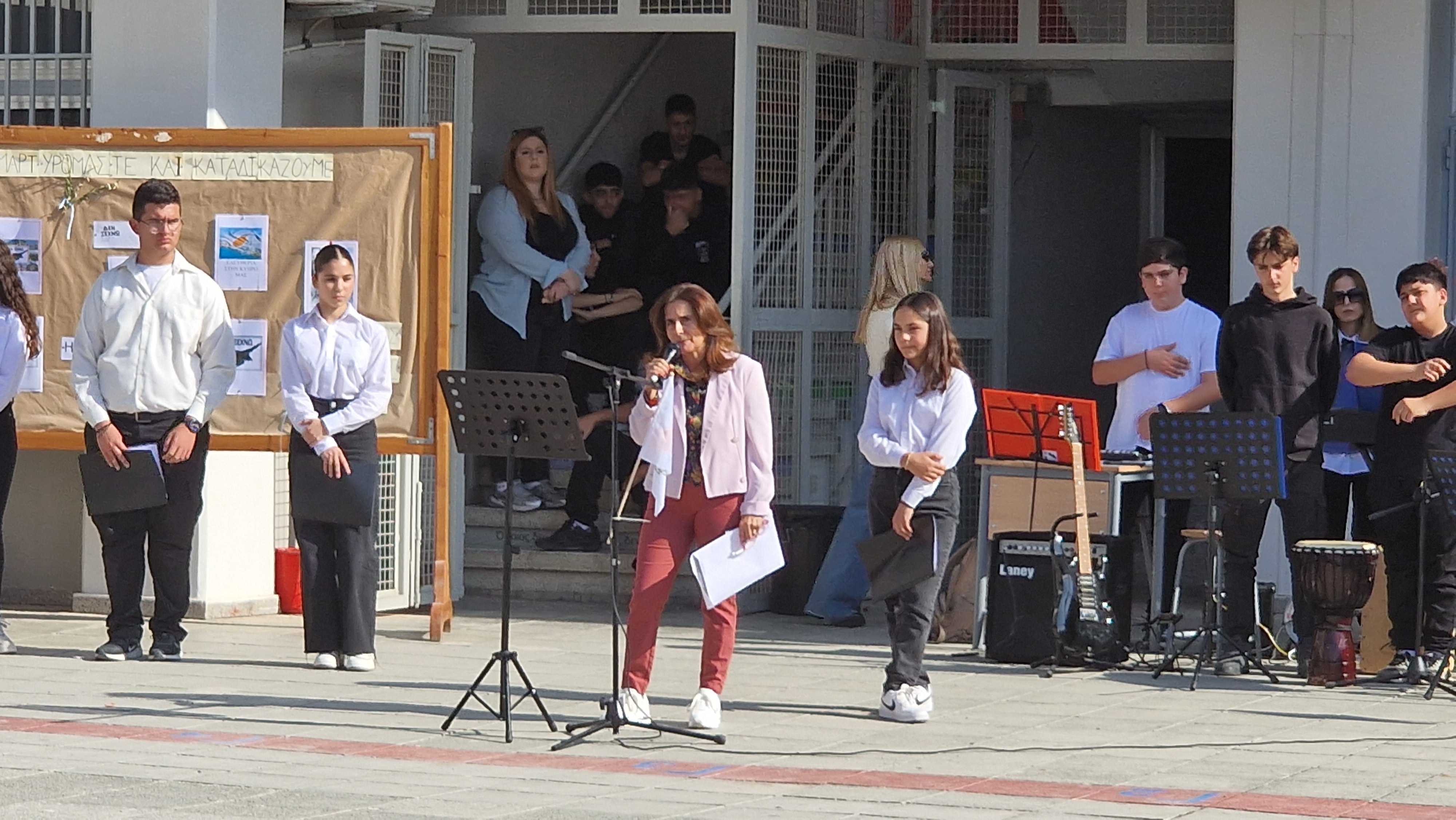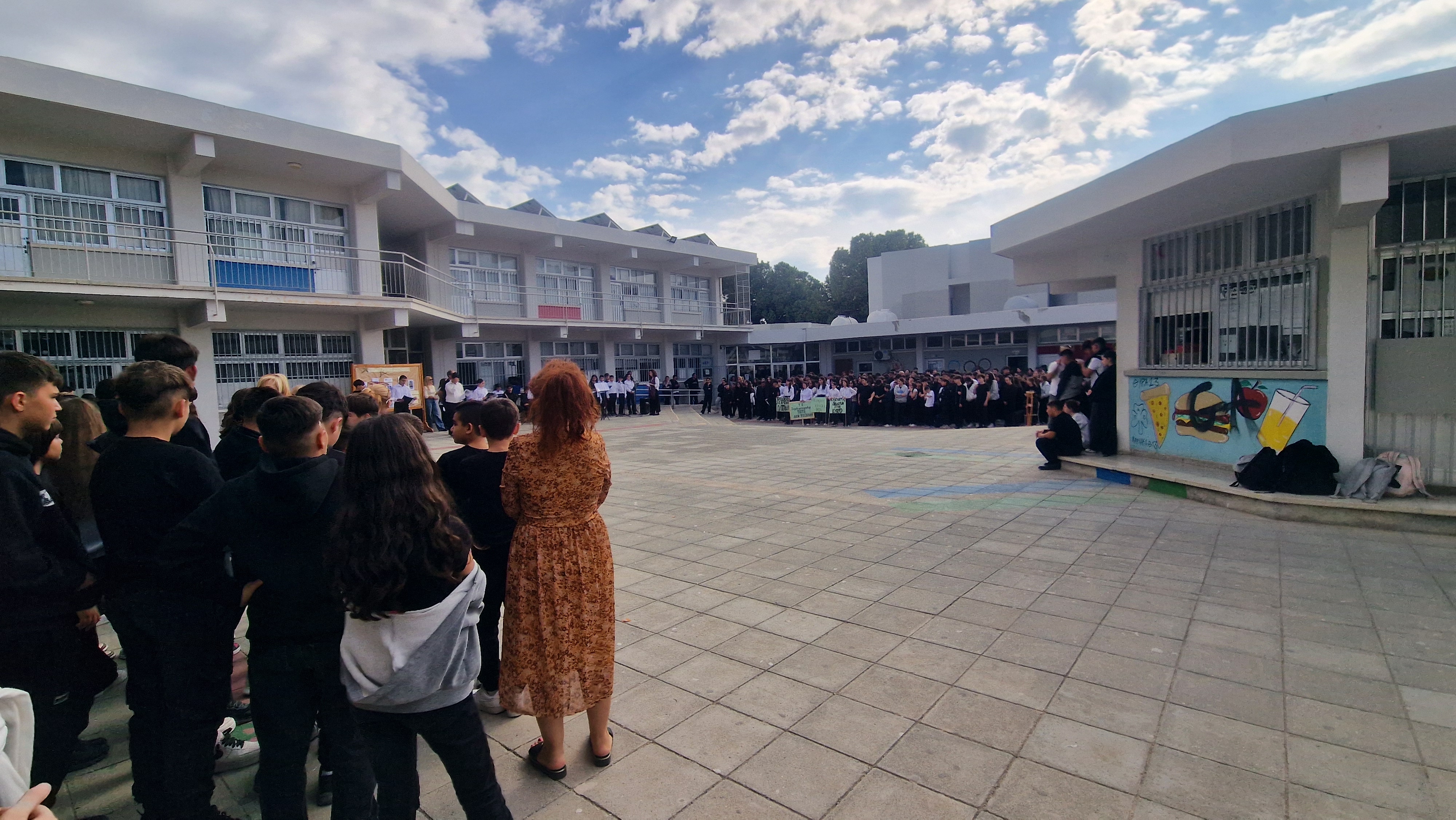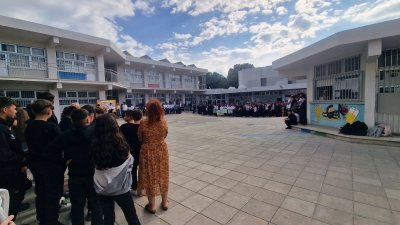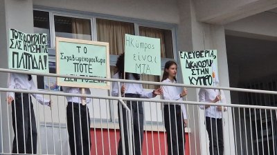 Οι μαθητές του Γυμνασίου μας εξέφρασαν την έντονη διαμαρτυρία τους και καταδίκασαν την παράνομη ανακήρυξη του αποσχιστικού καθεστώτος στα κατεχόμενα εδάφη της Κύπρου μας. Η μονομερής αυτή ενέργεια της Τουρκίας και του κατοχικού στρατού έχει καταδικαστεί με ψηφίσματα των Ηνωμένων Εθνών, καθώς και από όλους τους διεθνείς οργανισμούς. Μέχρι σήμερα, το καθεστώς αυτό δεν αναγνωρίζεται από καμία χώρα πέραν της Τουρκίας.