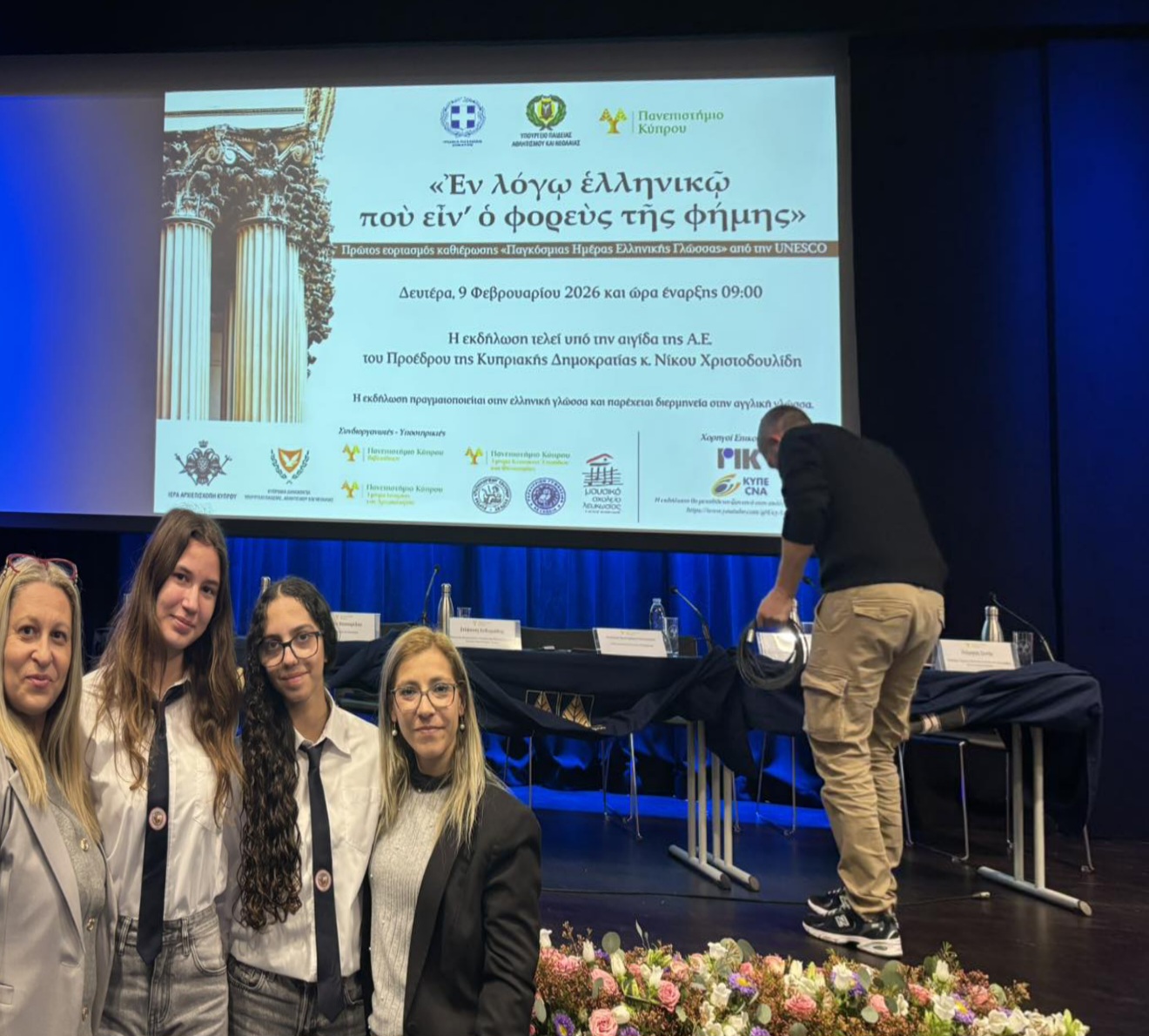 Επιπλέον, το σχολείο μας εκπροσωπήθηκε από τις μαθήτριες, Λοΐζα Ττόουλου και Άννα Παλταδώρου, του τμήματος Γ5 στην εκδήλωση, με τίτλο: «Ἐν λόγῳ ἑλληνικῷ ποὺ εἶν’ ὁ φορεὺς τῆς φήμης» με τη συνοδεία των φιλολόγων καθηγητριών του σχολείου μας, Μαρία Μυλωνά και Χαρούλα Αντωνίου. Η εκδήλωση διεξήχθη στη Λευκωσία, στην αίθουσα τελετών του Πανεπιστημίου Κύπρου (Καλλιπόλεως75) και υπήρξε ο Πρώτος εορτασμός καθιέρωσης της «Παγκόσμιας Ημέρας Ελληνικής Γλώσσας» από την UNESCO, σε συνδιοργάνωση με την Πρεσβεία της Ελλάδος στην Κύπρο, το Υπουργείο Παιδείας, Αθλητισμού και Νεολαίας και το Πανεπιστήμιο Κύπρου.