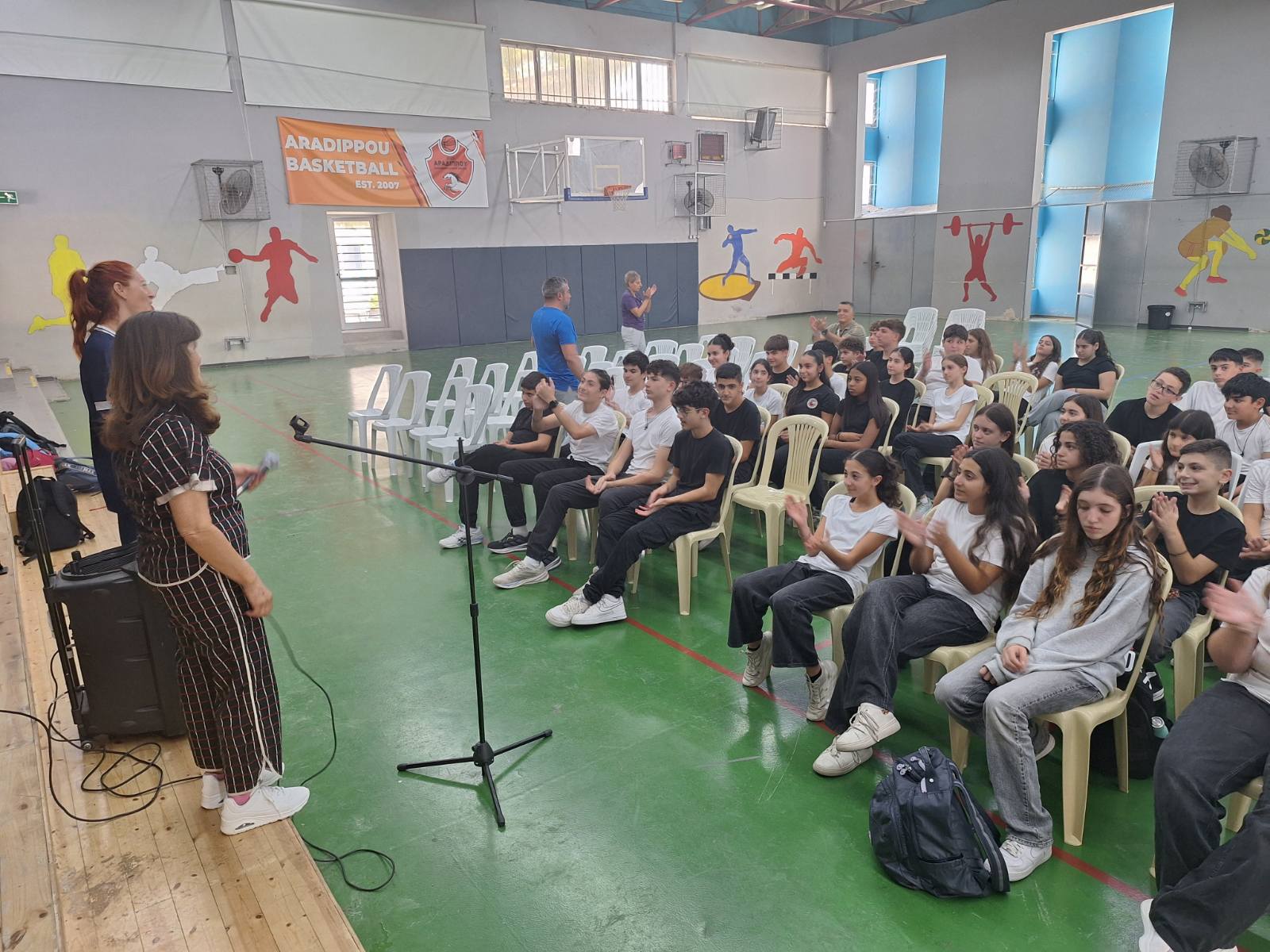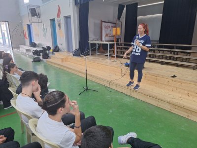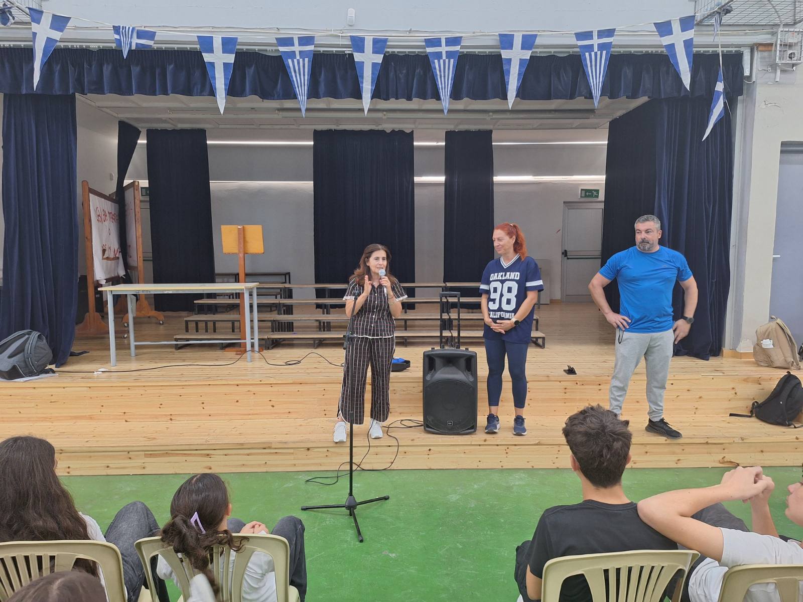 Προσκεκλημένη του σχολείου μας ήταν η κ. Χρύσα Γκουντενούδη, Πρωταθλήτρια και Ολυμπιονίκης του Στίβου, η οποία μίλησε στους μαθητές για τους μαραθώνιους και τη σημασία τους στον αθλητισμό, καθώς και για την αξία της προσπάθειας και της επιμονής.